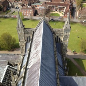 After breakfast yesterday, we took the extended tour of the interior of Salisbury Cathedral which included a 334 step hike up the spire, the tallest in Great Britain – at 404 feet! I know this because the Guiness Book of World Records has certified it, as evidenced by a plaque inside the spire where the … Continue reading