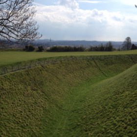 We stayed in Wiltshire County near Westbury last night, but just before checking in, we went looking for the Westbury White Horse, cut into the chalky hillside in 1742. Although it was raining, we drove to the top and hiked out to the overlook in our rain jackets. It was really cold. But the close-up … Continue reading