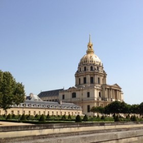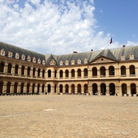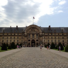 Leaving the Veteran’s Chapel, we stepped back out into the main courtyard of Les Invalides where the Army Museum has arrayed its impressive collection of 60 classical French bronze cannons and a dozen mortars and howitzers along the outer edge of the courtyard, as you can see in this photograph: Turning around and looking up … Continue reading