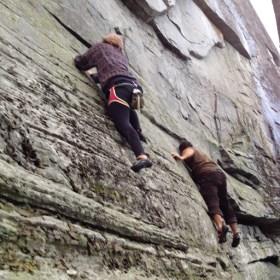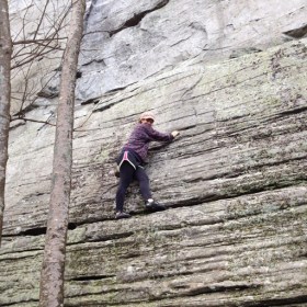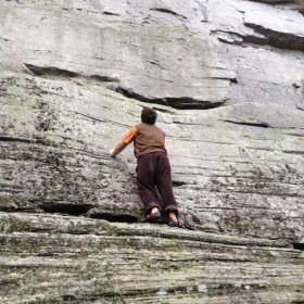 And up they go! Making it look easy. With a little style. Dale watched… Then we found a nice place to read while they figured out how to get back down. The blue blazes led us back to the car. Next time, to the top!