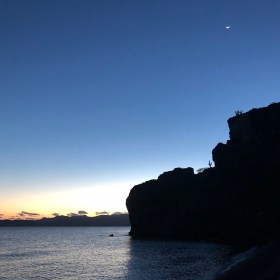 Kayaking Day 8, November 5, 2018 I was greeted this morning by a smiling, distant moon and watercolor sky. As my eyes scanned the eastern horizon, I also noticed a planet (although I don’t which), just visible above the golden haze of morning. Lino, who, as I mentioned, sleeps on the panga, was already awake … Continue reading