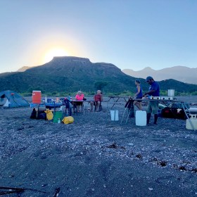 Kayaking Day 5, November 2, 2018 Another day, another glorious sunrise.  Mario had told us the night before to prepare for an early start and a long day. We would be paddling along a stretch of coast with limited opportunity for landing, so we wasted no time getting on the water. About a mile … Continue reading